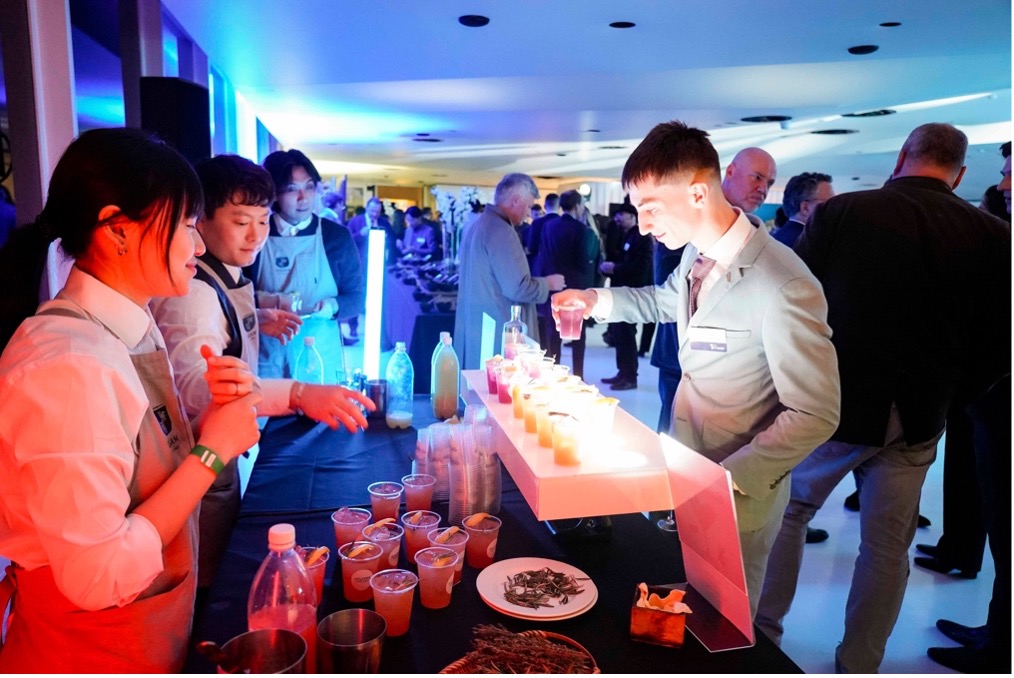 A networking-style dinner format was chosen toencourage interaction between attendees. Instead of a traditional seateddinner, buffet stations and branded cocktails were introduced to create a moredynamic and informal environment. This setup allowed guests to move freely,connect with each other, and engage more naturally throughout the evening.